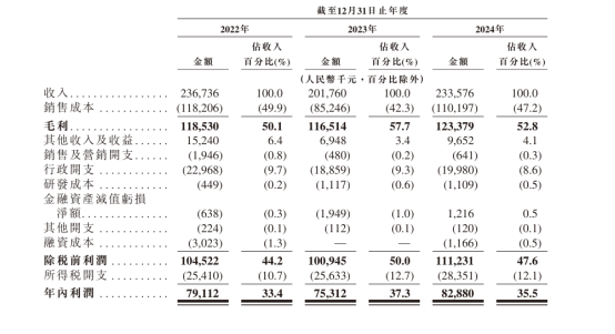 营收方面,2022年至2024年,红星冷链的营业收入分别为2.37亿、2.02亿和2.34亿元人民币,净利润分别为人民币7911.2万元、7531.2万元及8288万元,对应同期的净利率分别为33.4%、37.3%及35.5%。