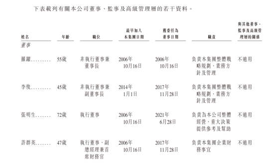 在红星冷链董事会中,72岁的张明生担任公司的执行董事,现年55岁的罗跃担任非执行董事兼董事长,自2006年起加入红星冷链,并自2019年起担任公司董事长及法定代表人。