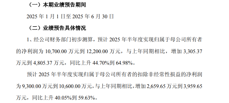 普莱柯(603566)近日发布2025年半年度业绩预告,预计净利同比增44.70%-64.98%。