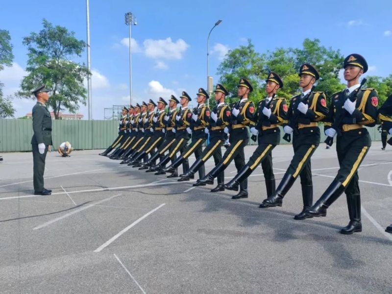 他们身着笔挺军服,以排面为单位进行队列训练,动作“六线合一”(头线、手线、枪线、腿线、胸线、帽线),气势威武。现场教官们略显沙哑的口令声此起彼伏,要求受阅官兵每个动作和表情都要做到无可挑剔。