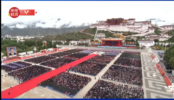 21日上午,习近平总书记在拉萨市布达拉宫广场出席西藏自治区成立60周年庆祝大会,同西藏各族各界干部群众约2万人共同欢聚,热烈庆祝西藏自治区成立60周年。