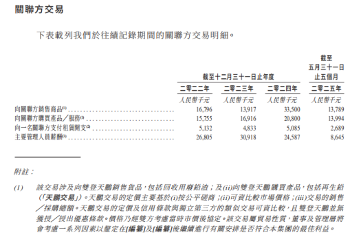 其一,关联交易信息“消失”?双登股份A股招股书明确披露,2022年与关联方泰州振杰(实控人亲戚控制企业)有1404万元的交易,但在港股招股书附录中,这笔交易记录却被删除。