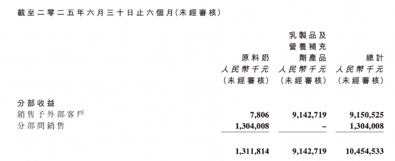 分产品来看,今年上半年,中国飞鹤乳制品及营养补充剂产品实现收入91.43亿元,同比下滑9.08%,占总收入的比例为99.91%;原料奶实现收入780.6万元,同比下滑79.82%,占总收入的比例为0.09%。