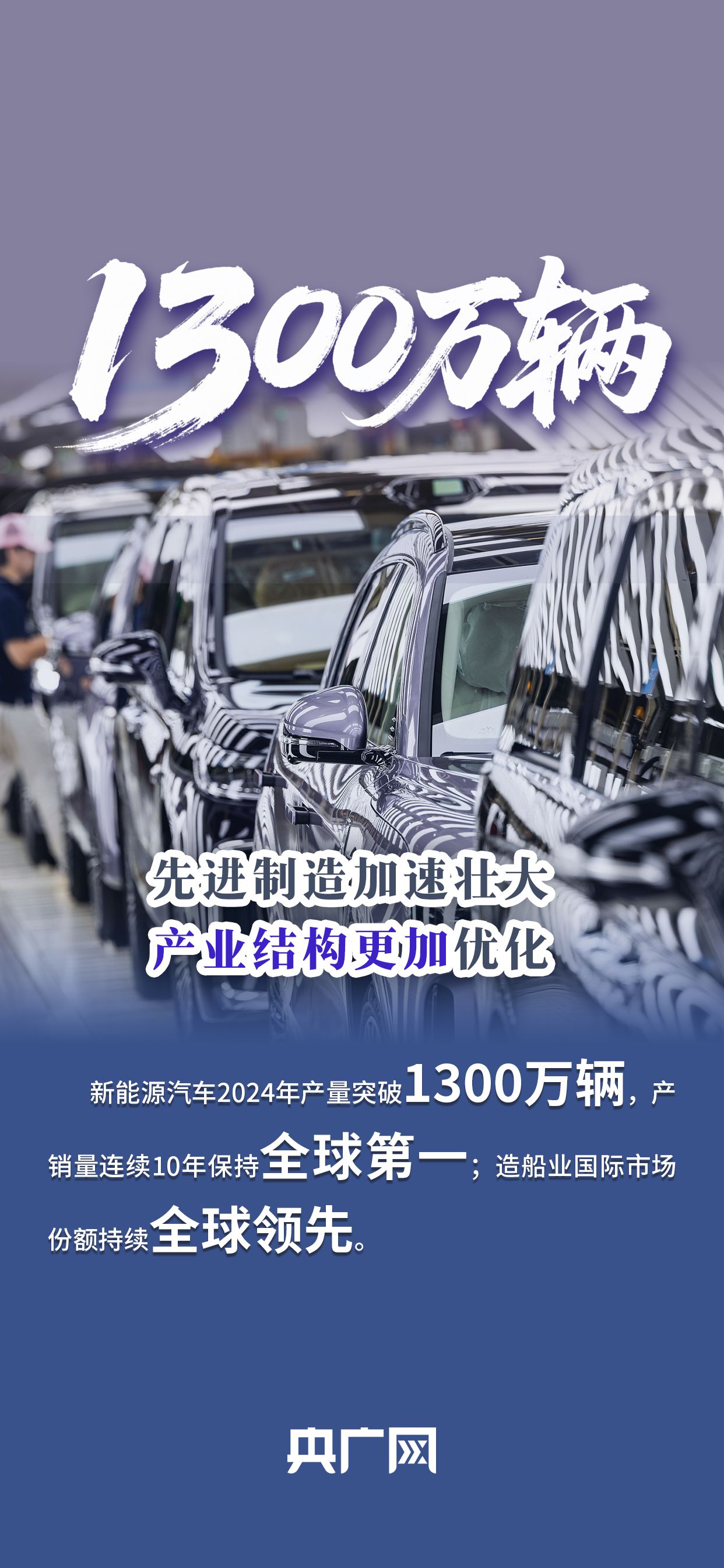 制造业总体规模连续15年保持全球第一,新能源汽车产销量连续10年保持全球第一,专精特新中小企业超14万家……一组数据看新型工业化发展“亮眼成绩单”。