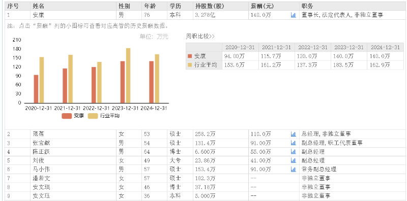据东方财富网数据,华兰生物董事长安康2024年年薪140万元,相较上年未涨薪。
