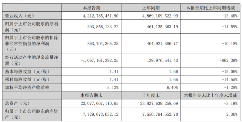 报告显示,迈为科技公司上半年营业收入为42.13亿元,同比下降13.48%;归母净利润为3.94亿元,同比下降14.59%;扣非归母净利润为3.64亿元,同比下降10.18%;基本每股收益1.41元。