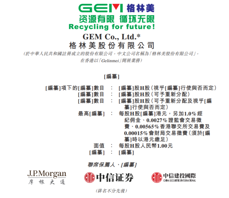 9月22日,据港交所官网披露,格林美股份有限公司(以下简称:格林美)向港交所主板提交上市申请书,摩根大通、中信证券、中信建投国际为其联席保荐人。