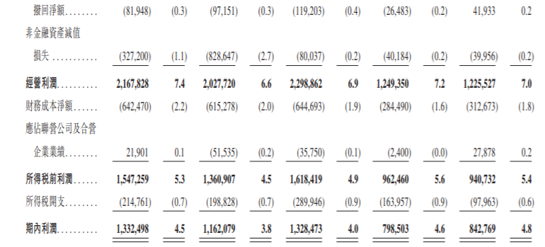 业绩方面,于2022年度、2023年度、2024年度及2025年截至6月30日止六个月,公司实现收入293.92亿元、305.29亿元、332亿元、175.61亿元;同期,年/期内利润分别约为13.32亿元、11.62亿元、13.28亿元、8.43亿元。