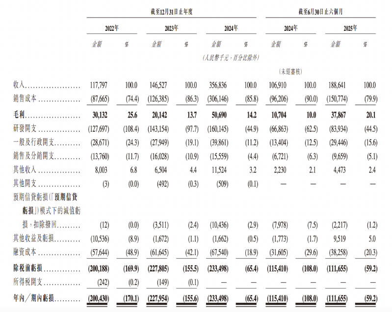 2025年上半年,魔视智能收入为1.89亿元,同比增长76.45%;期内亏损1.12亿元,上年同期亏损1.15亿元;毛利率为20.1%,上年同期为10%。