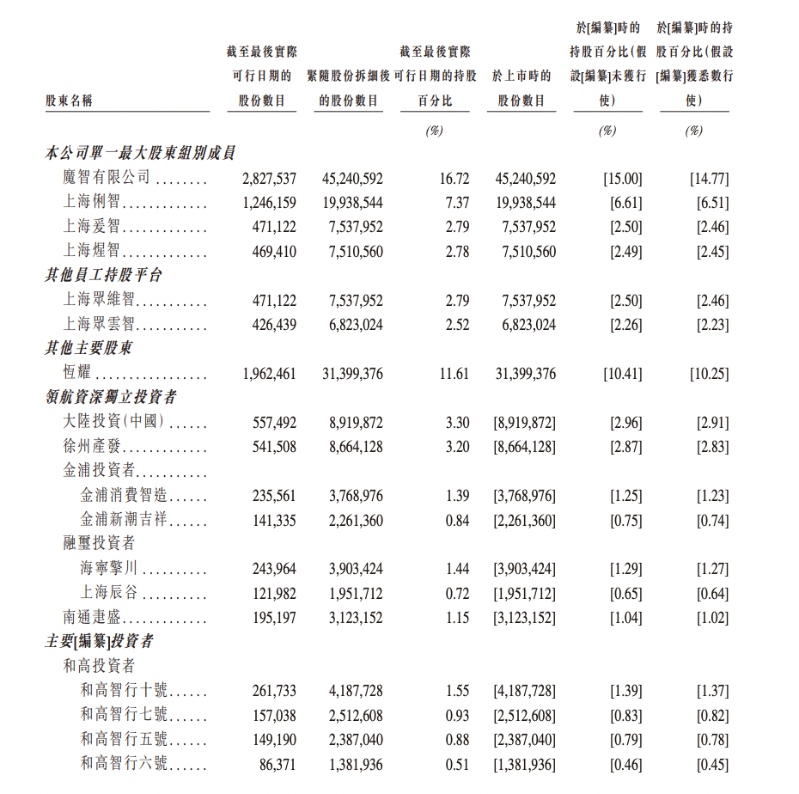 截至最后实际可行日期,虞正华控制魔视智能股东大会上29.65%的投票权,包括由上海俐智持有的7.37%权益,上海俐智由虞正华作为其普通合伙人控制;由上海爰智持有的2.79%权益,上海爰智由虞正华作为其普通合伙人控制;由上海煋智持有的2.78%权益,上海煋智由虞正华作为其普通合伙人控制;及由魔智有限公司持有的16.72%权益,魔智有限公司的唯一股东为Motovis Inc.,而Motovis Inc.由虞正华全资控制。