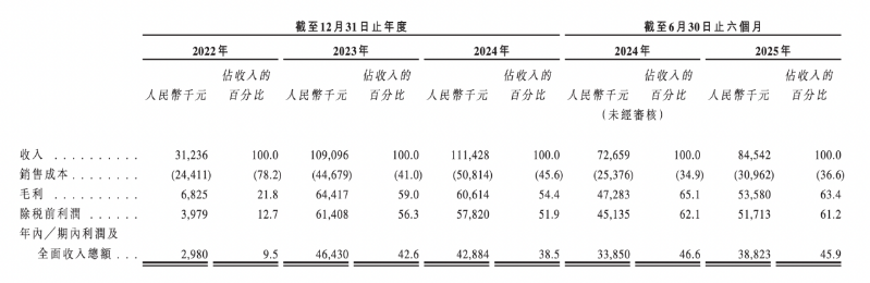 2022年至2024年,瘦西湖收入分别为3123.6万元、1.09亿元、1.11亿元,期内利润及全面收入总额分别为298万元、4643万元、4288.4万元,毛利率分别为21.8%、59%、54.4%。