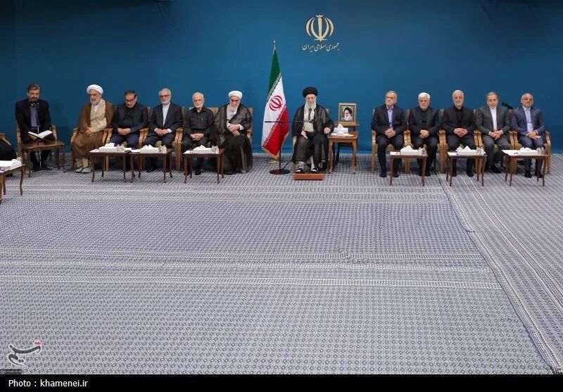▲伊朗最高领袖哈梅内伊同伊朗总统佩泽希齐扬及第14届政府代表会晤。(图源:伊朗最高领袖办公室)