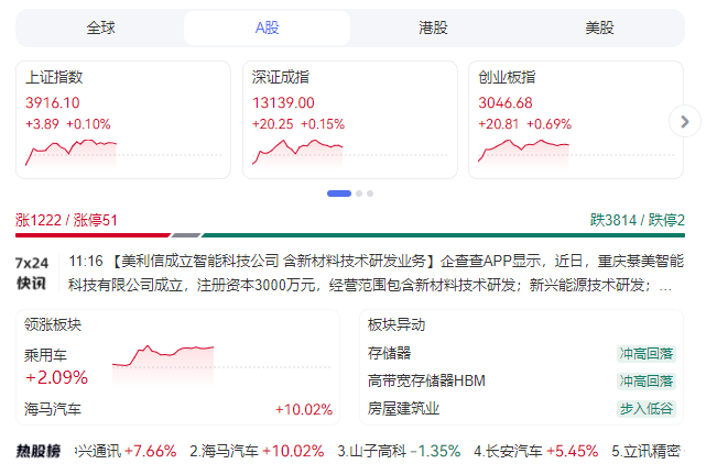 10月16日消息,指数早盘低开高走,三大股指半日集体收红。截至午间收盘,沪指报3916.10点,涨0.10%;深成指报13139.00点,涨0.15%;创指报3046.68点,涨0.69%。