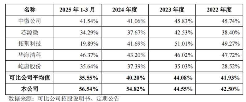 此外,莱普科技毛利率水平相比同行业可比公司毛利率高出不少。报告期内,可比公司毛利率均值分别为41.93%、44.08%、40.2%及35.55%。2024年及2025年一季度,莱普科技较之分别高出14.62个百分点、20.99个百分点。
