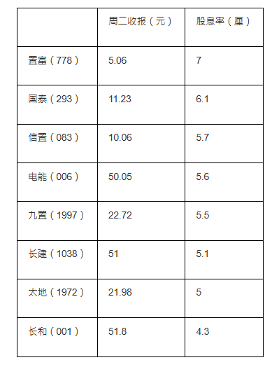 他表示,公用股可以留意长江基建(01038.HK)、电能实业(00006.HK);国泰航空(00293.HK)现时股息率近6厘,也可视为收息股;收租股则留意太古地产(01972.HK)、九仓置业(01997.HK);另外股息率逾4厘的长和(00001.HK)也可考虑。
