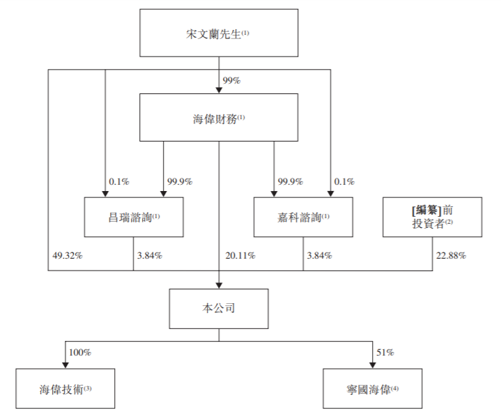 上市前,宋文兰直接持股49.32%,通过海伟财务、昌瑞咨询、嘉科咨询分别持股20.11%、3.84%、3.84%,合计持股77.12%。