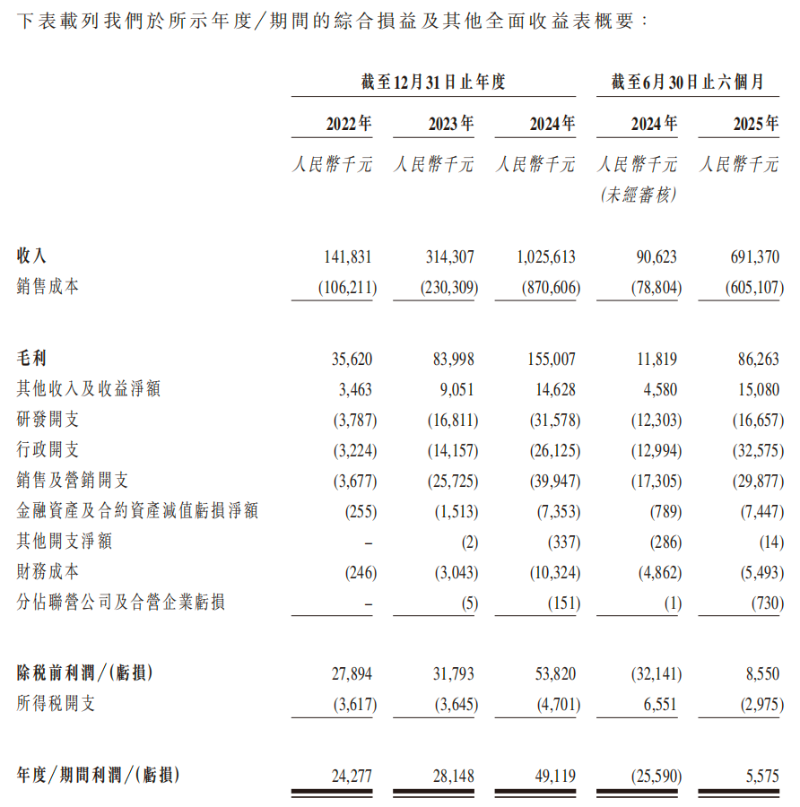 招股书显示,近几年,果下科技营收快速增长,从2022年的1.42亿元飙升至2024年的10.26亿元,增幅超过6倍。今年上半年,公司收入达到6.91亿元,不过,同期利润却不一样耀眼,仅有557.5万元。
