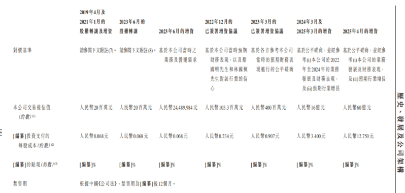 招股书显示,2023年3月,公司估值仅为4亿元。但到了2025年4月,其估值就已经飙升至60亿元,短短两年内增长了14倍。