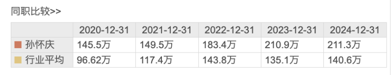 东方财富数据显示,2020年至2024年,孙怀庆薪酬分别为145.5万元、149.5万元、183.4万元、210.9万元、211.3万元;王开慧薪酬分别为115.3万元、124.3万元、148.4万元、230.7万元、240.9万元。