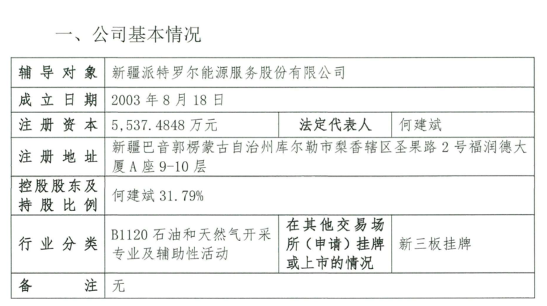 11月24日,新疆派特罗尔能源服务股份有限公司(以下简称:新派能源)在新疆证监局完成辅导备案,拟北交所IPO,辅导机构长江证券承销保荐。