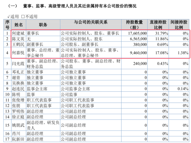 据新三板公开转让说明书,新派能源实际控制人为何建斌、陈文英夫妇及儿子何嘉悦,三人合计直接持有公司60.73%的股份,且何嘉悦通过巴州创胜间接控制公司2.38%的股份。