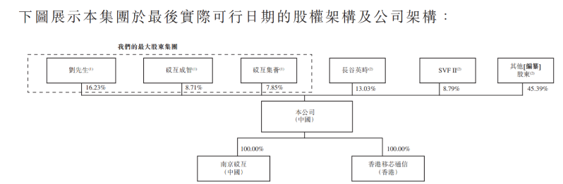 IPO前,刘石直接持有公司已发行股份的约16.23%,砹亘成智直接持有公司已发行股份的约8.71%;及砹亘集荟直接持有公司已发行股份的约7.85%。最大股东集团有权行使及控制行使公司已发行股份分别约为32.79%的表决权。