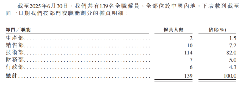 截至2025年6月30日,公司雇员合计139人,研发人员占员工总数的82%。
