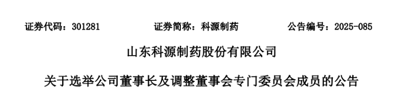 公告显示,山东科源制药股份有限公司当日召开第四届董事会第十六次会议。会议审议通过《关于选举公司董事长的议案》,决定选举李红福为公司第四届董事会董事长,任期自董事会审议通过之日起至第四届董事会任期届满之日止。同时,鉴于董事会人员变动,会议审议通过《关于调整董事会专门委员会委员的议案》,同意增补李红福为第四届董事会战略委员会主任委员。