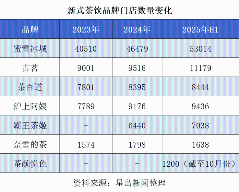 截至2025年上半年,新茶饮品牌在资本的助力下呈现出扩张提速的趋势。其中蜜雪冰城凭借加盟模式,全球门店突破5.3万家,海外布局覆盖东南亚、拉美等市场;古茗门店数超1.1万家,沪上阿姨突破9400家,也均以加盟模式为核心扩张引擎。而奈雪的茶主打直营模式(目前直营门店1321家、加盟店317家),在门店数量方面远不及其他已上市同行。