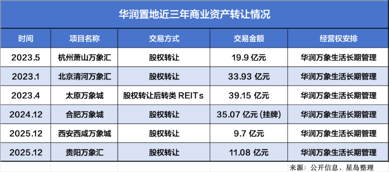 算上即将转让的西安、贵阳两个项目,华润置地近几年通过出让资产产权但绑定经营权的方式,已回笼资金逾百亿。