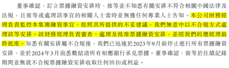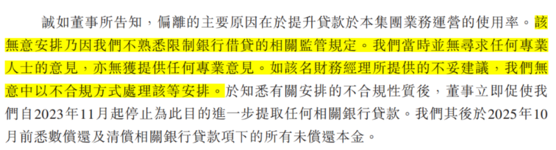对于这些违规行为,禹王生物将责任归咎于财务经理,其解释称:“公司财务经理负责监控本集团融资事宜,按照其所提供的不妥建议,我们无意中以不合规方式处理该等安排”,“偏离的主要原因在于提升贷款于本集团业务运营的使用率。财务经理所提供的不妥建议,我们无意中以不合规方式处理该等安排。”