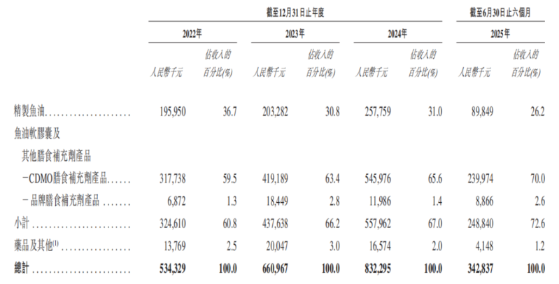 2022年及2023年,公司毛利率分别为25.4%、28.1%,2024年及2025年上半年,毛利率分别降至26%及20.7%,显示其盈利能力的下降,主要原因是公司使用了部分在价格下跌前以较高价格购买的毛鱼油,从而导致产品成本较高。