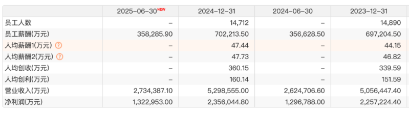 上海银行2024年年报显示,截至报告期末,集团共有在职员工14712人(含劳务派遣人员),Choice金融终端显示,当年上海银行人均薪酬约47万元,与2023年相比亦有所增加。