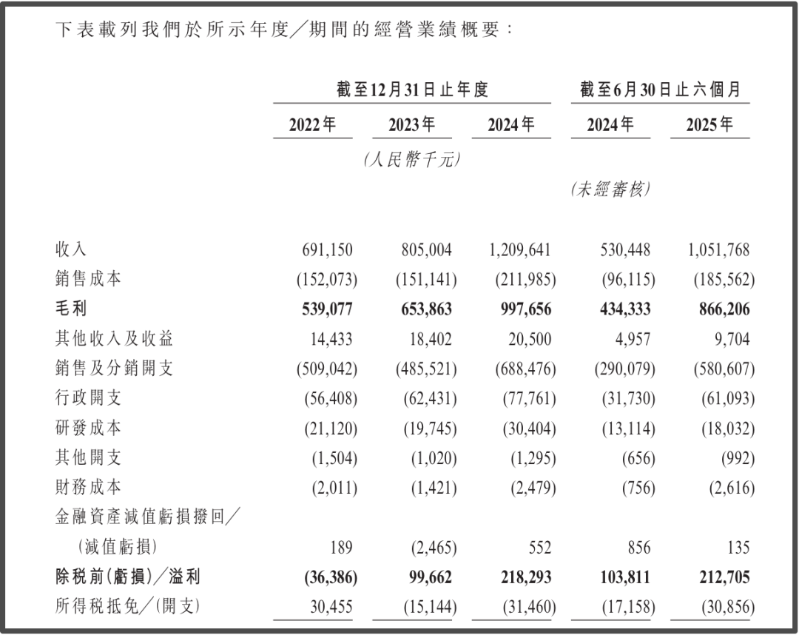 2025年上半年,林清轩营收已达10.52亿元,同比增长98.3%;经调整净利润1.82亿元,净利率高达17.3%。更惊人的是其高达82.4%的毛利率,远超欧莱雅(74%)、珀莱雅(68%)等同行,直逼茅台(毛利率94.06%),比一些奢侈品牌毛利率都高。