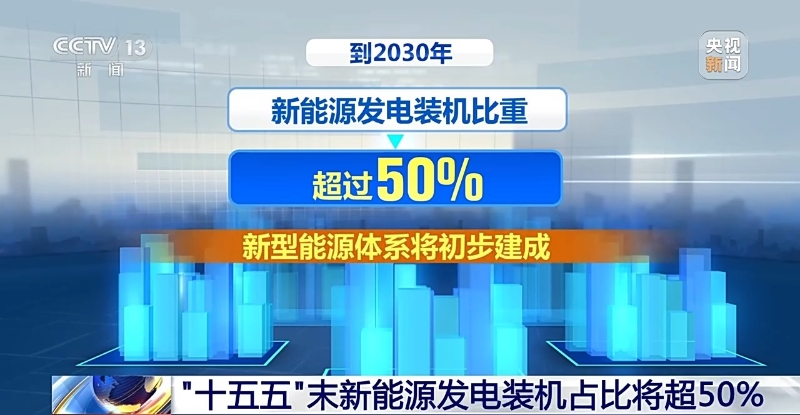 此外,记者了解到,到“十五五”末,也就是到2030年,我国新能源发电装机比重将超过50%,新能源发电装机成为电力装机主体。