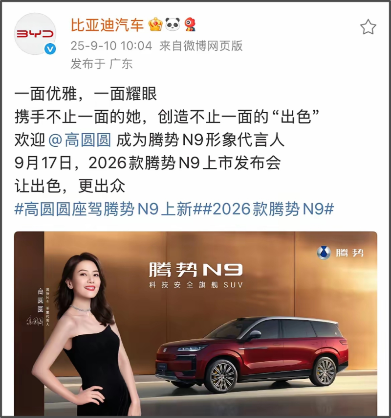 值得肯定的是,比亚迪今年来正积极尝试转变:从过去极少启用明星代言,到为仰望、腾势引入潘展乐、高圆圆等兼具影响力与质感的代言人/形象大使,并通过曝光俞敏洪、曹德旺、何猷君等知名企业家车主,有意识地塑造高端用户群像。