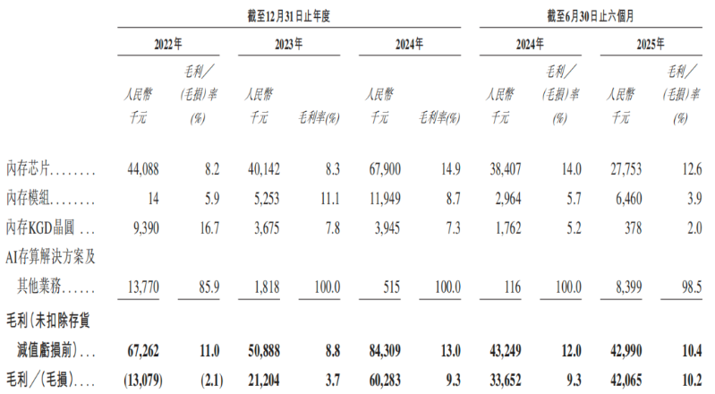 反观核心产品内存芯片的收入占比从88.2%逐年下降至70.2%,2025年上半年收入同比下滑20.11%,收入占比同比减少22.8个百分点,降至53.3%。
