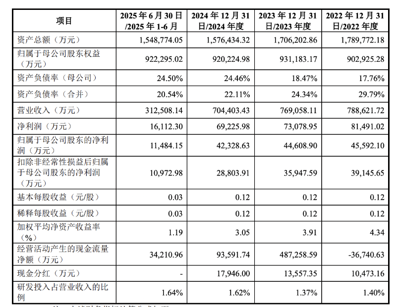 2022年-2024年及2025年上半年,中盐股份分别实现营业收入78.86亿元、76.91亿元、70.44亿元和31.25亿元,扣除非经常性损益后归属于母公司股东的净利润3.91亿元、3.59亿元、2.88亿元和1.1亿元,业绩有所下滑。综合毛利率分别为34.00%、31.19%、32.06%和30.38%。