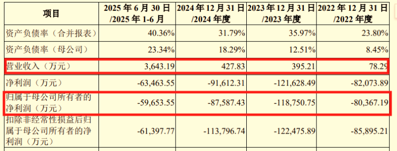 2022年至2025年上半年,蓝箭航天归母利润分别为亏损8.03亿、11.86亿元、8.77亿元及5.97亿元,过去三年半累计亏损达到34.61亿元。截至2025年6月底,历史累计亏损48.40亿元。