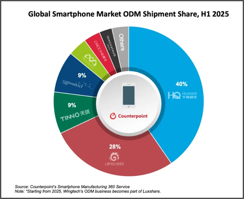 据《星岛》了解,全球智能手机ODM市场主要由巨头华勤、龙旗、天珑、立讯精密(合并原闻泰科技部分业务)四大巨头主导。