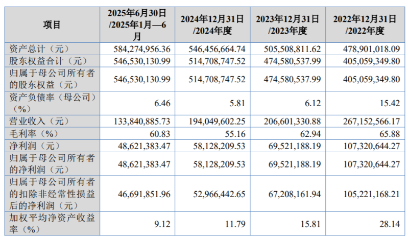 业绩方面,2022年至2024年及2025年上半年(报告期内),文峰光电营业收入分别为2.67亿元、2.07亿元、1.94亿元、1.34亿元,净利润分别为1.07亿元、6952.12万元、5812.82万元、4862.14万元。