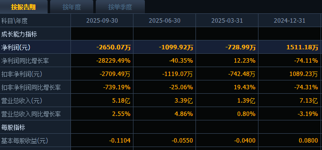 蓝箭电子于2023年8月在深交所创业板上市。财报显示,2025年前三季度,公司实现营业收入5.18亿元,同比增2.55%,但净利润亏损2650.07万元,同比下降28229.49%。