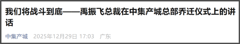 值得关注的是,2025年12月底,“中集产城”官微才披露公司总部乔迁至中集前海国际中心东塔26楼,总裁禹振飞发表演讲“我们将战斗到底”与每一位中集产城人共勉。如今为了回笼资金,该公司不得不亏本出售新总部大楼。