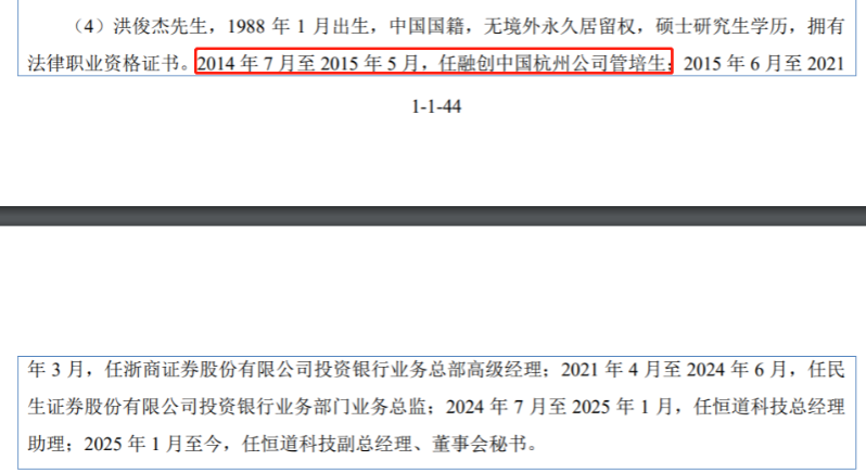 2024年7月,洪俊杰空降恒道科技任总经理助理,仅半年后升任副总经理兼董秘,主导公司IPO申报。