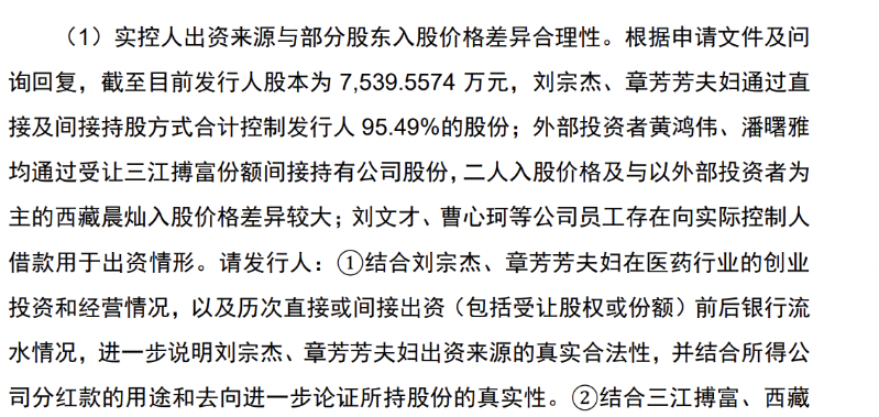 对此,北交所要求中健康桥:结合刘宗杰、章芳芳夫妇在医药行业的创业投资和经营情况,以及历次直接或间接出资(包括受让股权或份额)前后银行流水情况,进一步说明刘宗杰、章芳芳夫妇出资来源的真实合法性,并结合所得公司分红款的用途和去向进一步论证所持股份的真实性。