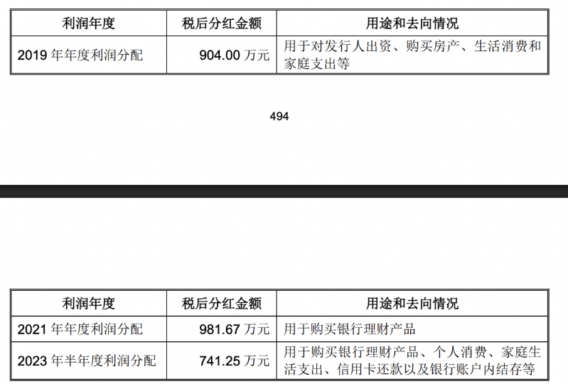 刘宗杰、章芳芳夫妇对公司历次分红款的用途和去向不存在流向公司员工、客户、供应商及其关联方等情形,不存在向他人转付分红款等分红款去向异常的情形。
