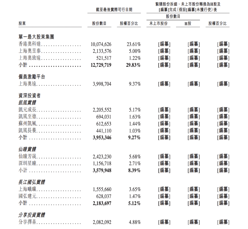 另外,雇员激励平台上海奥远持股9.37%,凯风实体、仙瞳实体、长江国弘实体、分享投资实体分别持股9.27%、8.39%、5.12%、4.88%。