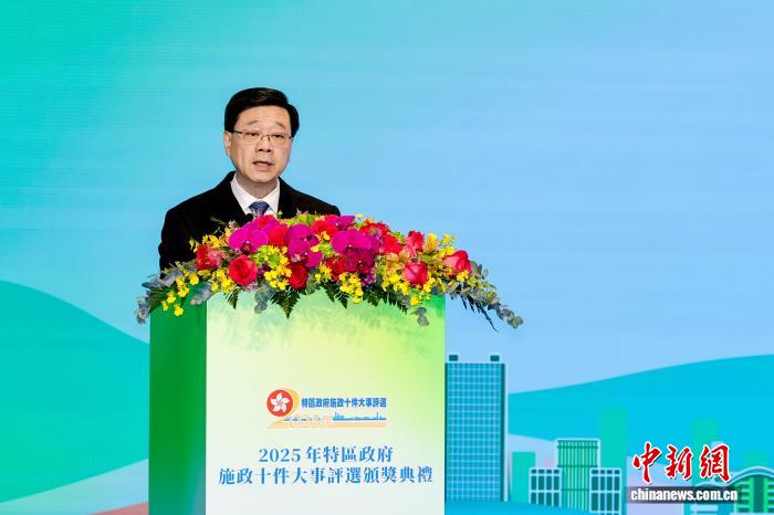 ▲1月29日,“2025年特区政府施政十件大事评选”颁奖典礼在香港会议展览中心举行。图为香港特区行政长官李家超在典礼上致辞。主办方供图