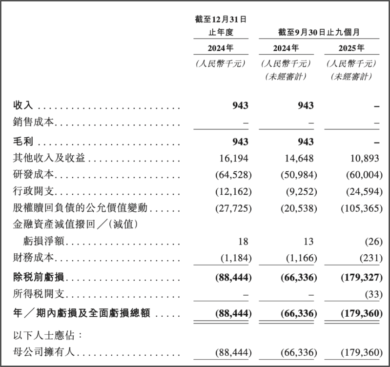 成立至今,2024年至2025年前三季度,邦顺制药研发投入分别为0.65亿元、0.6亿元,叠加其他行政开支等费用,使得同期净利润亏损分别为-0.88亿元、-1.79亿元。