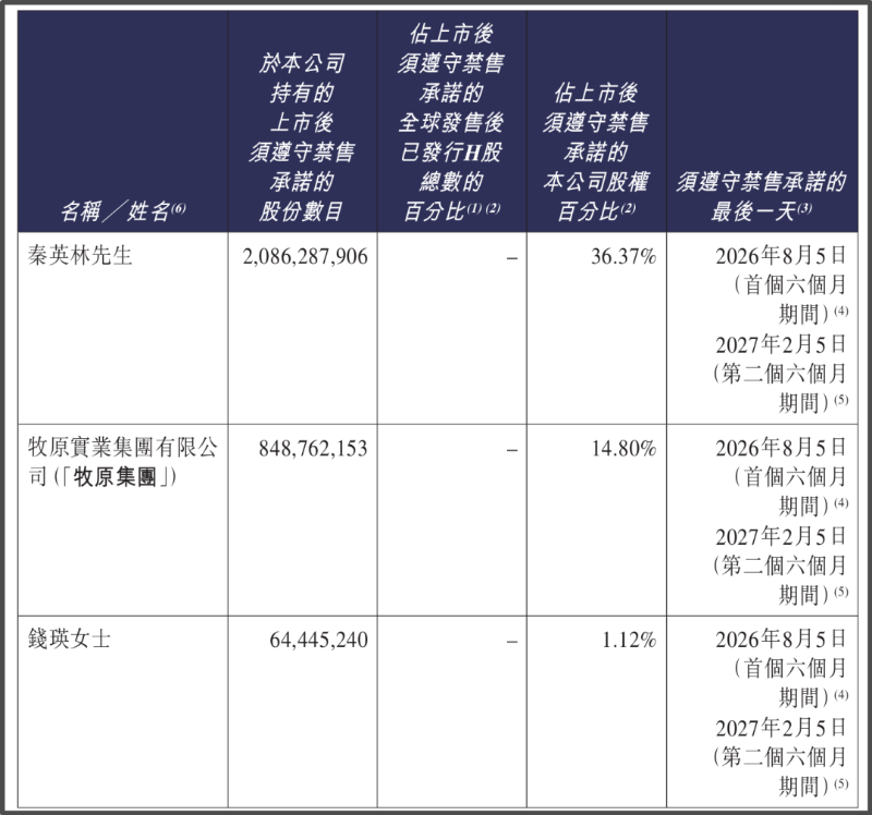 伴随着牧原股份H股上市,其创始人的财富也进一步增厚。数据显示,H股上市后,秦英林、钱瑛夫妇及一致行动人累计持股约达29.99亿股,股权比例52.29%;按每股40.54港元计,大股东所持股份市值超过1215亿港元。